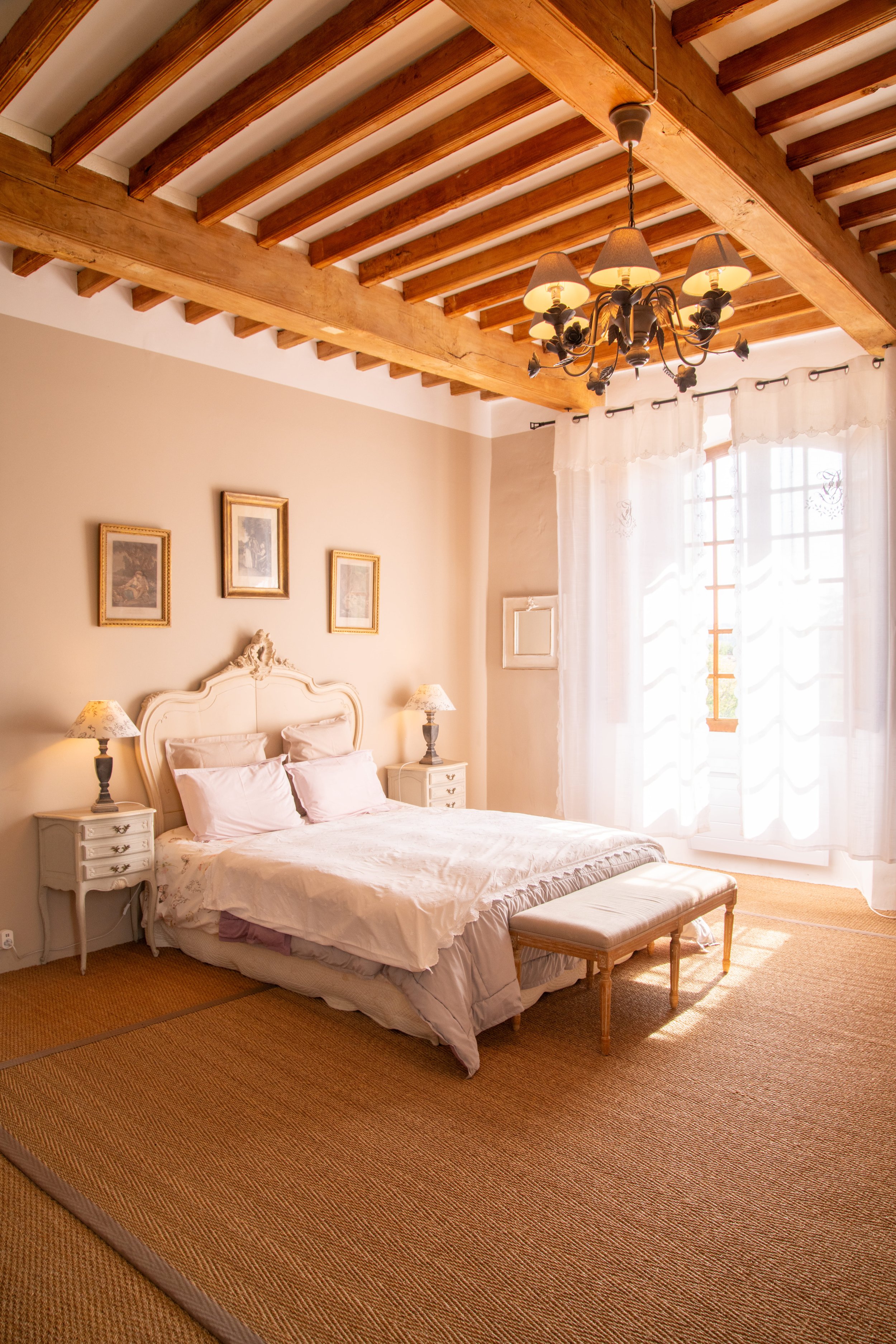 La Bastido est une belle chambre, lumineuse avec une fenêtre donnant sur la terrasse, ≃18 m2. Le sol est en jonc de mer. Un lit double (190×160). Une petite salle d’eau (≃3 m2 ) avec douche et toilettes. Cette chambre est au 2ème étage.